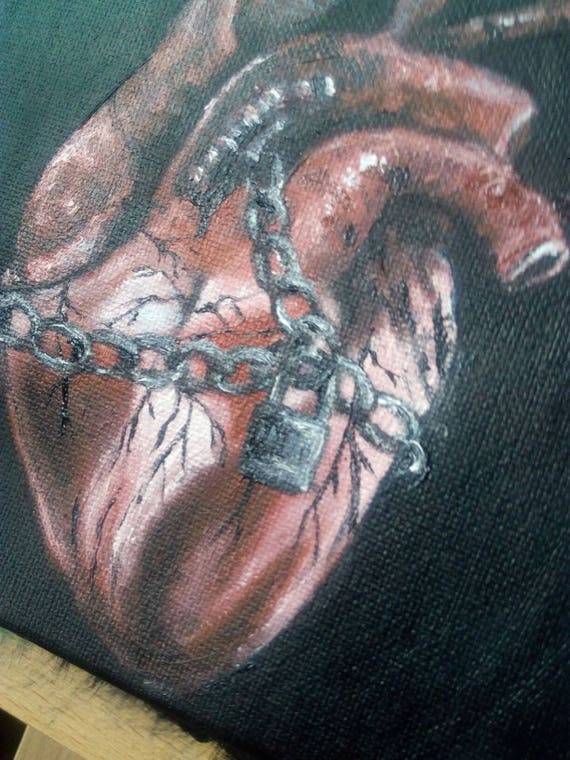 Unvalentine Chained Heart Oil Painting 6x 6 Ready Etsy Uk